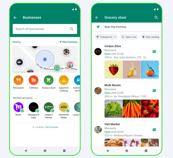 Em 2022, a empresa Meta adicionou o WhatsApp Business Search, que possibilita aos usuário realizar buscas para encontrar estabelecimentos ou empresas que estão próximas.